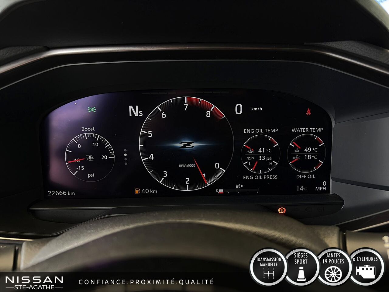 This 2024 Nissan Z is available at Nissan Ste-Agathe in Sainte-Agathe-des-Monts. Contact our sales team or come meet us at 301 Rue Léonard for more details, for a test drive, or to make a reservation.