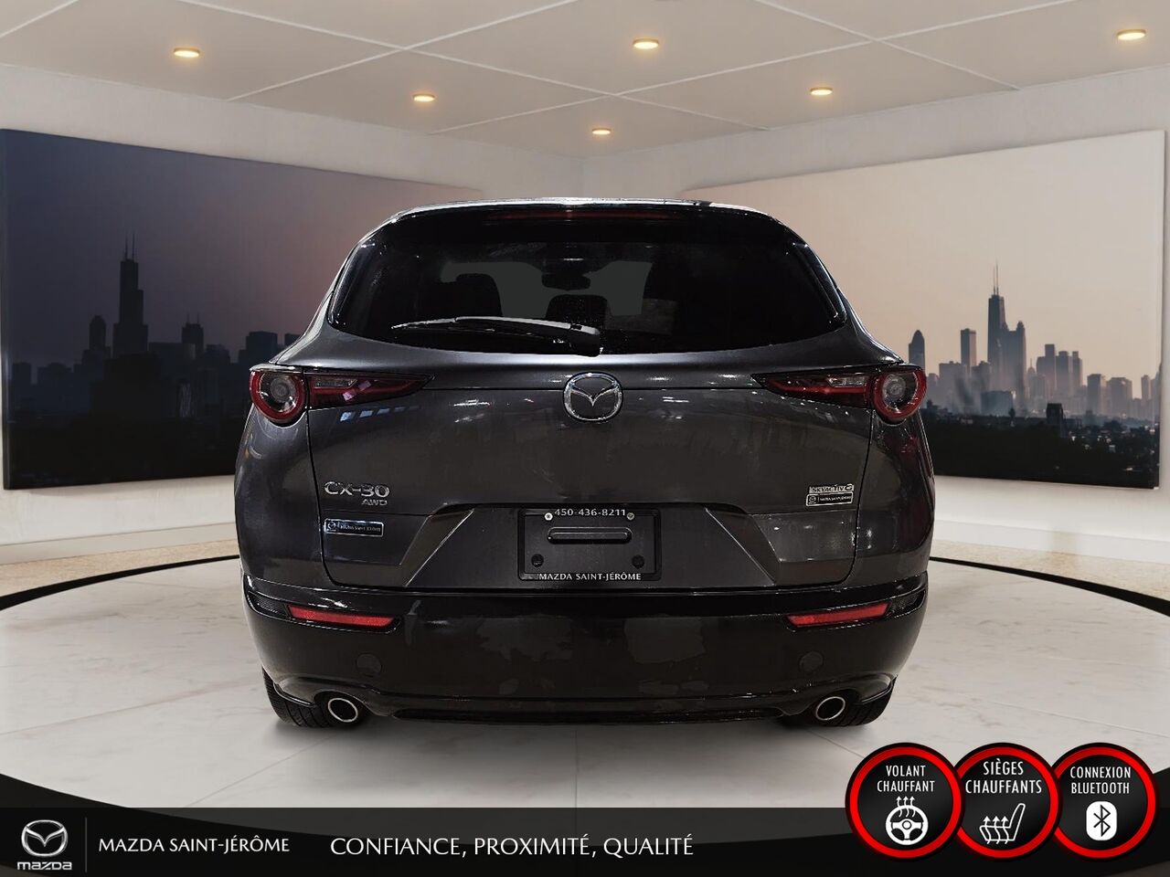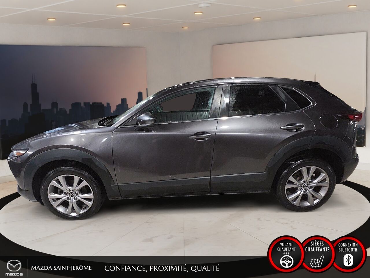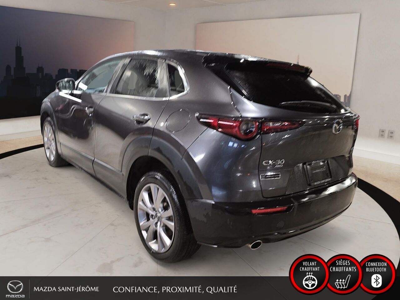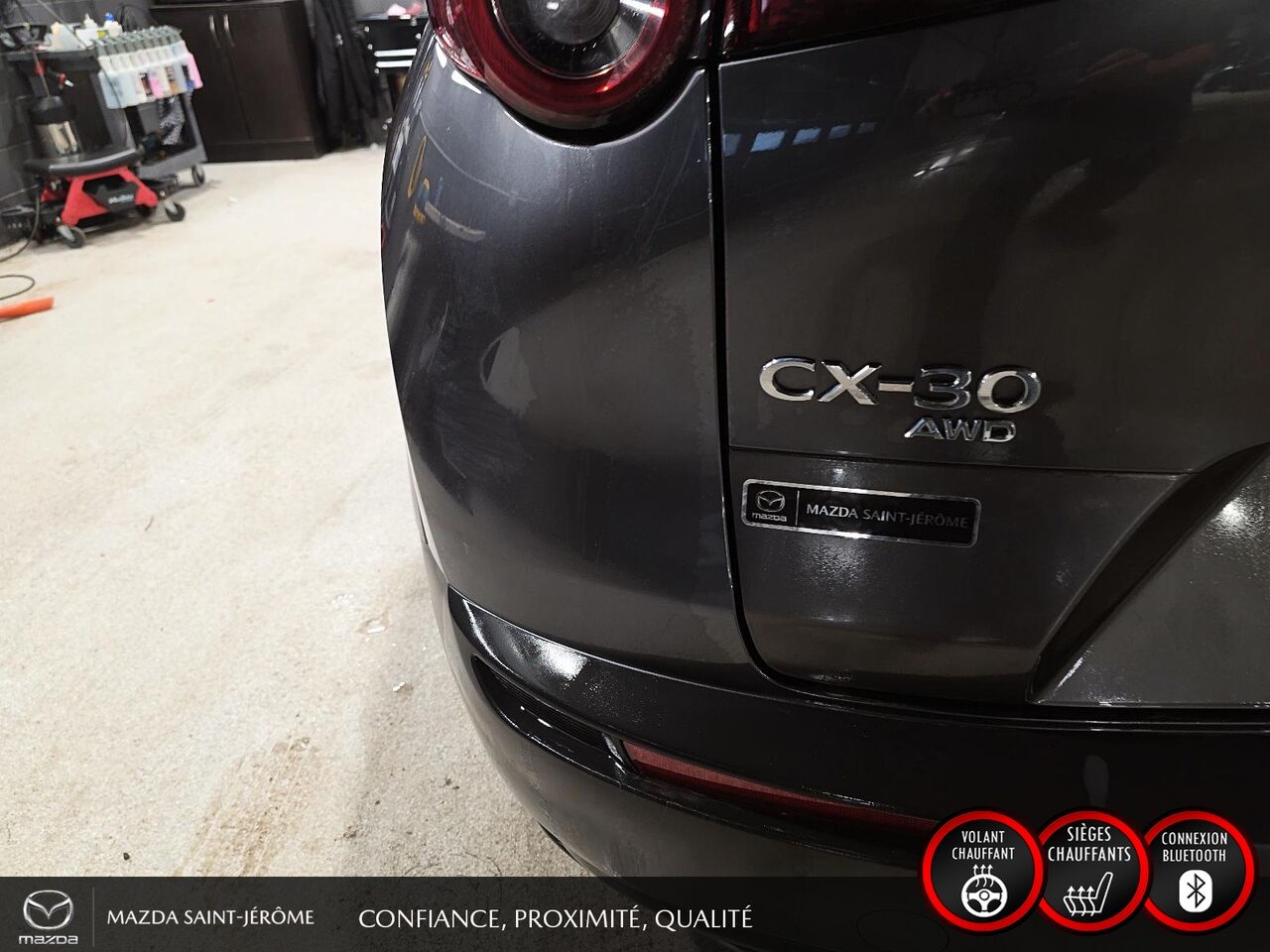 Ce Mazda CX-30 2021 est disponible chez Mazda St-Jérôme à Saint-Jérôme. Contactez notre équipe des ventes ou venez nous visiter au 155 Boul. Lachapelle pour obtenir plus d'informations, en faire l'essai ou le réserver.