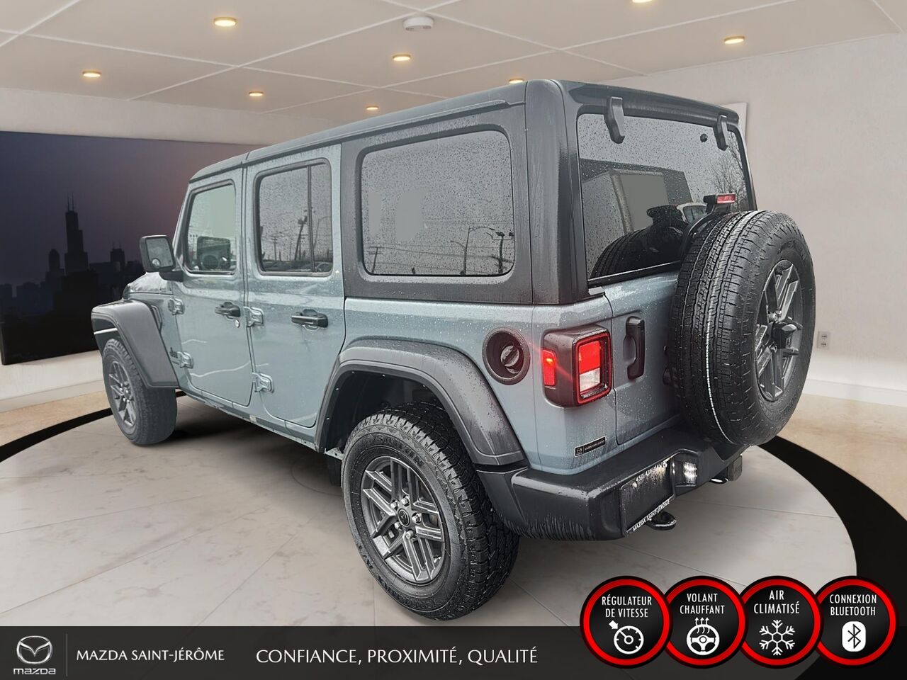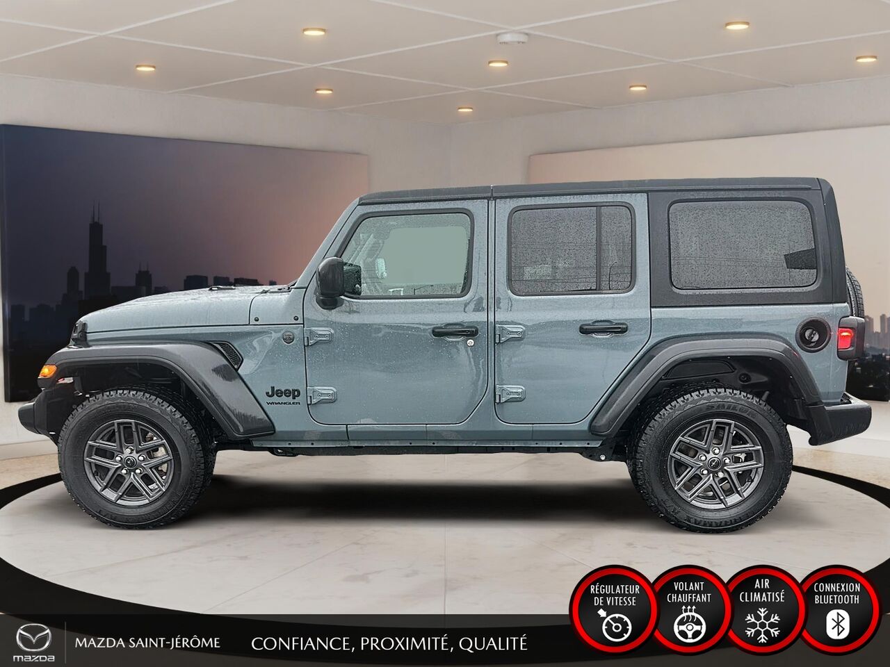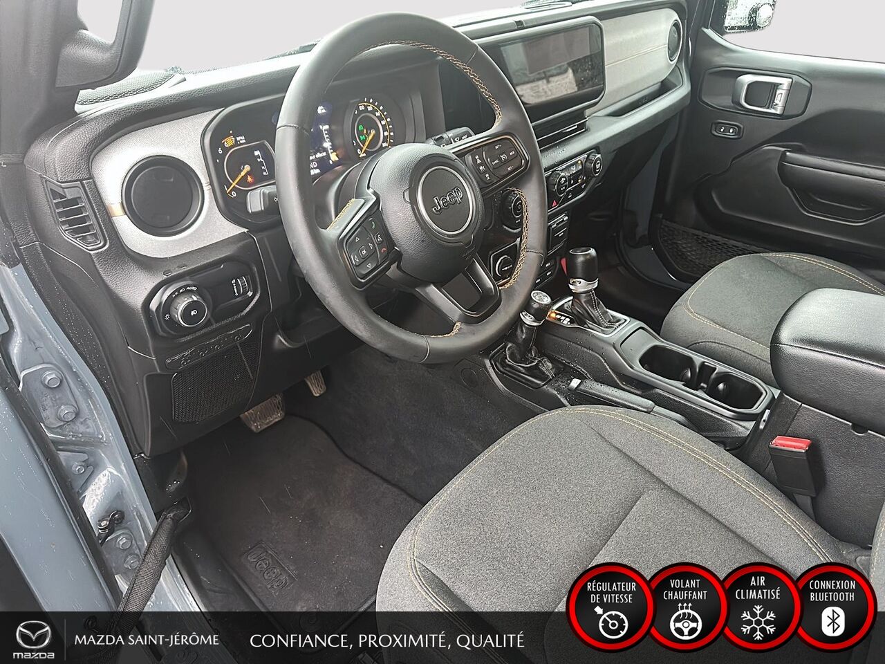 Ce Jeep Wrangler 2024 est disponible chez Mazda St-Jérôme à Saint-Jérôme. Contactez notre équipe des ventes ou venez nous visiter au 155 Boul. Lachapelle pour obtenir plus d'informations, en faire l'essai ou le réserver.