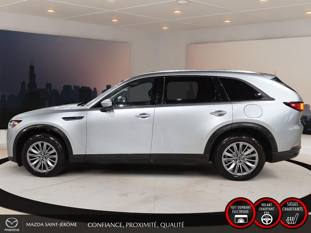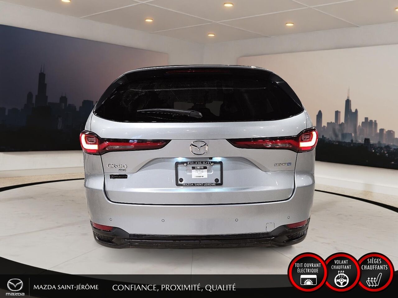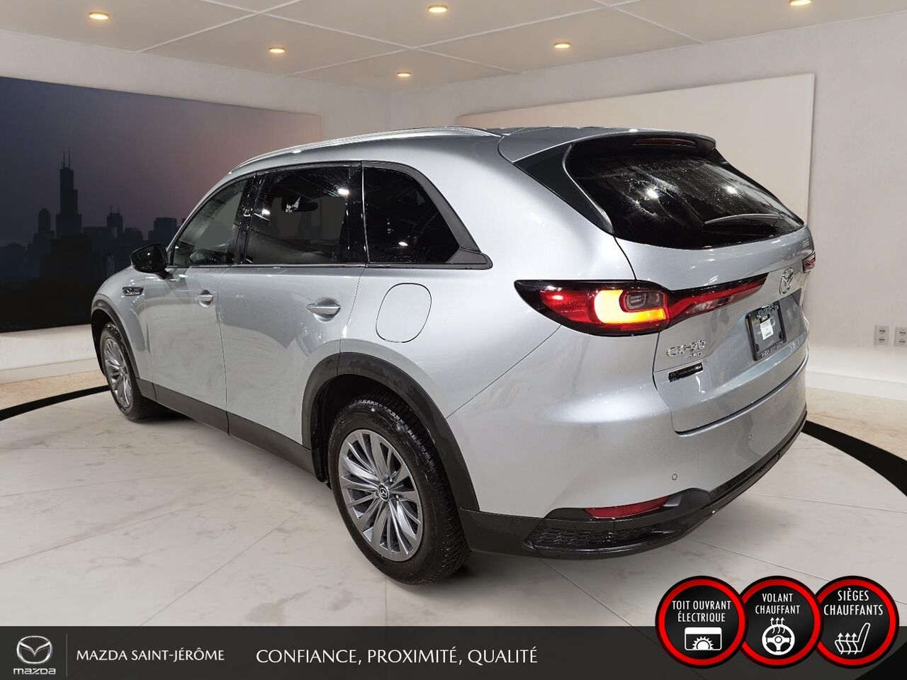 Ce Mazda CX-90 hybride rechargeable 2024 est disponible chez Mazda St-Jérôme à Saint-Jérôme. Contactez notre équipe des ventes ou venez nous visiter au 155 Boul. Lachapelle pour obtenir plus d'informations, en faire l'essai ou le réserver.